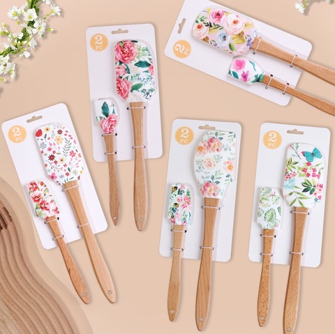 2 Pcs Cấp Thực Phẩm Linh Hoạt Cao Su Silicone Thìa Thiết Lập Tùy Chỉnh Với Hoa Mô Hình Cho Baking Bột